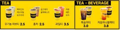 에스프레소 | 1,500 | 미확인 | 미확인 |