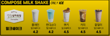 커피 밀크쉐이크 | 4,500 | - | 미확인 |